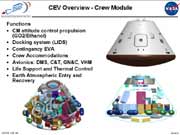 The CEV will have a docking system compatible with the ISS and with all other elements of lunar and eventually martian spacecraft. It will also be able to support contigency EVAs.