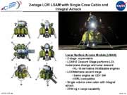 This lunar lander will be a bit more cozy than its cramped, spartan Apollo predecessor. At Mike Griffin's insistence, there will be an airlock which allows dirty spacesuits and other items to be kept separate from the crew's quarters. Connolly noted that thought is also being given to leaving part of the crew compartment behind as part of a cached resource that could later be used for a lunar base. Such an approach is currently referred to by NASA as an "Incremental Build Approach".