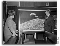 Keith’s note: Does any one at NASA Langley Research Center (or elsewhere in/around NASA) know where this large reproduction of the Lunar Orbiter 1 “Earthrise” image (or others like it) are currently located? Please drop an email to lunarorbiter-at-spaceref.com – thanks! More information.