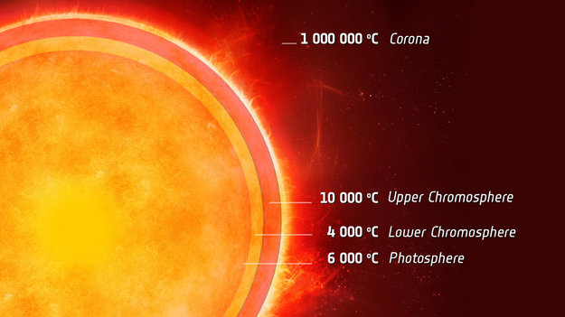 The heating of the Sun’s atmosphere has been a conundrum for many years, but is likely to be related to the twisting and snapping of magnetic field lines sending energy rippling through the atmosphere and out into space — possibly in the direction of Earth — as solar storms. Why there is a temperature minimum has also long been of interest to solar scientists.