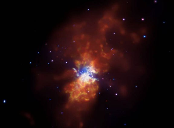 A new Chandra X-ray Observatory image of Messier 82, or M82, shows the result of star formation on overdrive. M82 is located about 12 million light years from Earth and is the nearest place to us where the conditions are similar to those when the Universe was much younger with lots of stars forming.