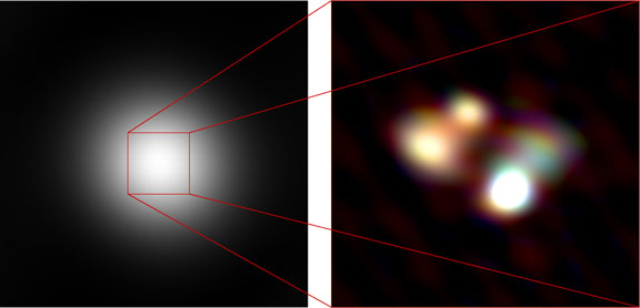 Both, the Max-Planck-Institut fuer Radioastronomie (Bonn) and the Max-Planck-Institut fuer Astrophysik (Garching), run stations of the International LOFAR telescope (ILT), coordinated by ASTRON, the Netherlands Institute for Radio Astronomy. By connecting the German LOFAR stations with the central stations in the Netherlands, an international group of scientists led by Olaf Wucknitz from the Argelander Institute of Astronomy (AIfA) at Bonn University has now produced the first high-resolution image of a distant quasar at meter radio wavelengths.