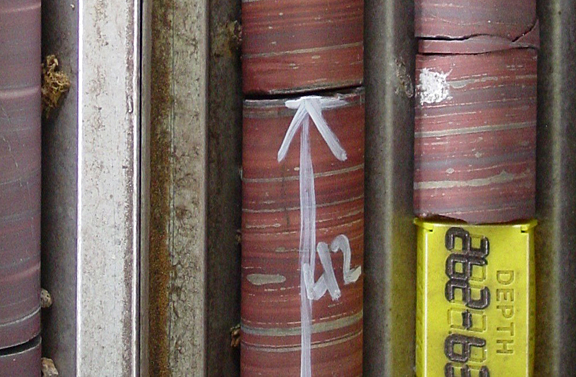 An example of a drill core of the chemical sediments called iron formations that the UCR-based team used to track marine phosphorus concentrations. The core is from the approximately 2.2 billion-year-old Hotazel Formation from South Africa. Photo credit: Lyons lab, UC Riverside.