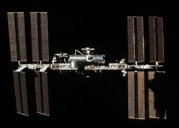 Surrounded by the blackness of space, the International Space Station is featured in this image photographed by an STS-130 crew member on space shuttle Endeavour after the station and shuttle began their post-undocking relative separation. Undocking of the two spacecraft occurred at 7:54 p.m. (EST) on Feb. 19, 2010. A partial shadow of Endeavour is visible on the solar array wing panels at lower right. high res (0.6 M) low res (57 K)