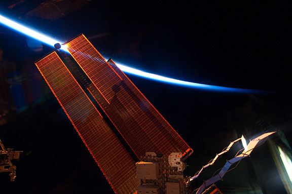 Photo: The Space Station’s Solar Panels and a Crescent Earth