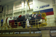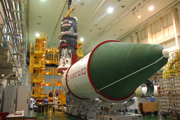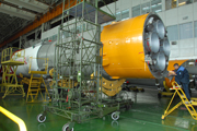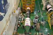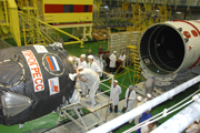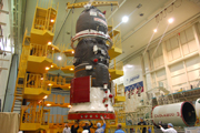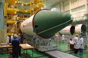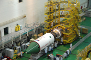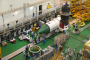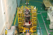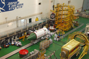 Orbital module of the Soyuz-U launch vehicle, containing Progress M-03M spacecraft was integrated with the Soyuz-U launch vehicle in the processing facility.