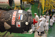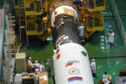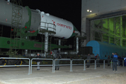 At Baikonur launch site the preparations continue for the launch of Progress M-03M cargo vehicle under the International Space Station program. Progress M-03M cargo vehicle fuelled with propellant components and compressed gases was delivered to the Spacecraft Assembly and Testing Facility for final processing operations.