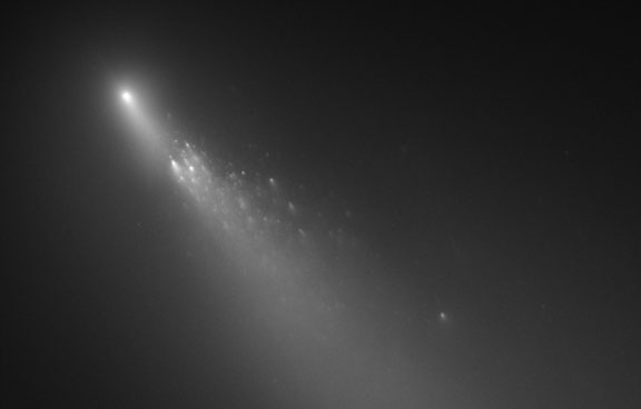 Caption: 2005 Hubble Space Telescope image of the breakup of a comet (73/P Schwassman-Wachmann 3)