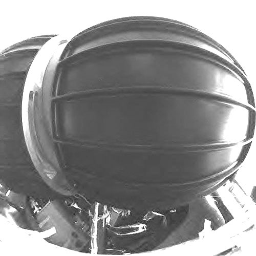 This image taken by the hazard avoidance camera on the Mars Exploration Rover Spirit shows the rover’s front wheels in stowed configuration.