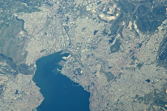 Izmir Metropolitan Area, Izmir Province in Turkey is featured in this image photographed by an Expedition 27 crew member on the International Space Station. The metropolis of Izmir is located in the western Anatolia region of Turkey. It is the country’s third largest city in terms of population and the second largest port city (after Istanbul).