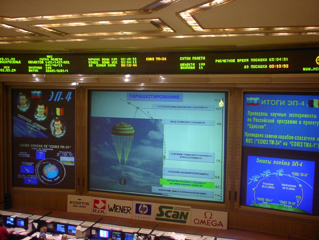 The VC-4 flight tasks were successfully completed. The manned transfer vehicle Soyuz TM-34, been a part of ISS orbital complex since April 27, 2002, as a rescue vehicle and been the earlier manned space vehicle modification of Soyuz type, was replaced by Soyuz TMA-1, the new modification, designed by the S.P. Korolev RSC Energia specialists in cooperation with its subcontractors from Russian rocket and space industry. During this crew flight the program of scientific research and experiments, including those related to Odissea Project, was fully completed.
