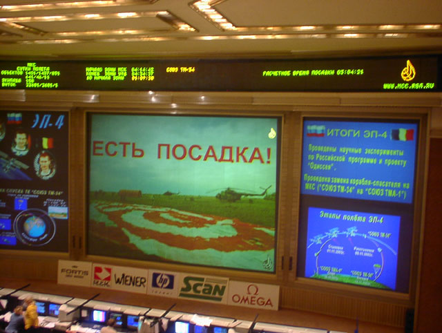 During the Soyuz TM-34 descent/landing maneuvering the members of State Committee (Co-chairmans: N.F. Moiseev, Secretary of State, First Deputy General Director of Rosaviacosmos; V.A. Grin, Deputy Director of TsNIIMASH) and Technical Management of Manned Space Programs (Yu.P. Semenov, Technical Manager of Russian Manned Programs, General Designer of S.P. Korolev RSC Energia, Member of the Russian Academy of Science) as well as representatives of Rosaviacosmos, NASA, ESA, leading specialists of RSC Energia, Russian enterprises and organizations involved in the ISS Project realization.
