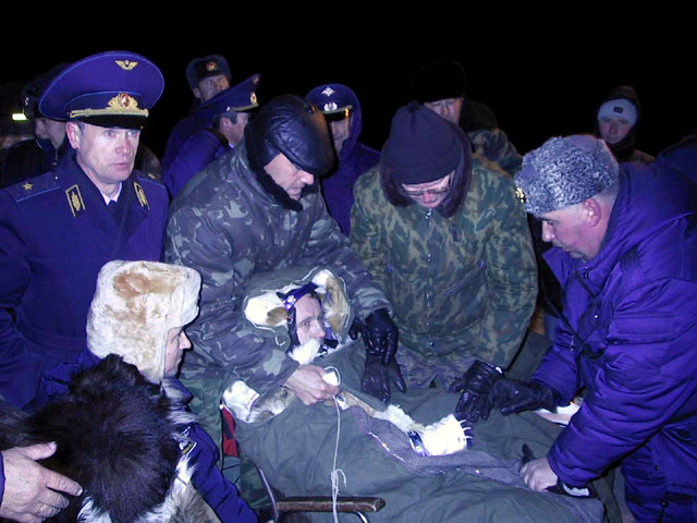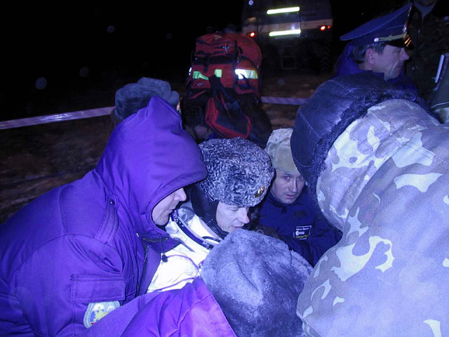 The landing module was landed in the target district, located near Arcalyck (Kazakhstan). At the first time over recent 10 years the landing was performed at night, the touch with ground surface by the landing module was performed at 03:04 in Moscow time. Search and rescue service effectively provided a timely search of landing module in complicated dark night conditions, and its escorting on the phase of its pancake and landing with subsequent crew evacuation from the landing site.