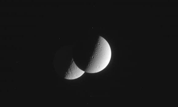 NASA Cassini Image: Dione Eclipses Tethys as Seen From Cassini