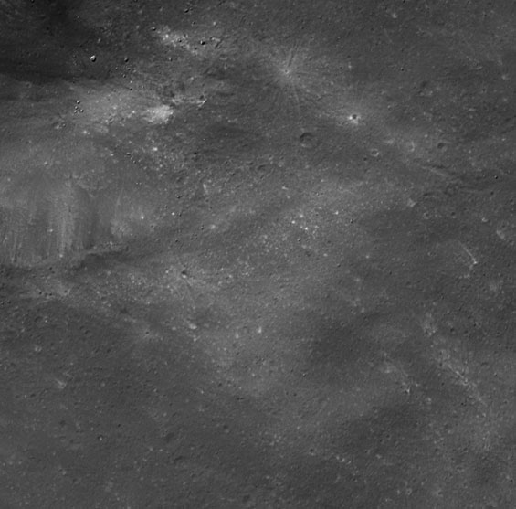 On June 11, 2004, during its closest approach to Phoebe, Cassini obtained this extremely high resolution view of a dark, desolate landscape. Regions of different reflectivity are clearly visible on what appears to be a gently rolling surface. Notable are several bright-rayed impact craters, lots of small craters with bright-colored floors and light-colored streaks across the landscape. Note also the several sharply defined craters – probably fairly young features – near the upper left corner.