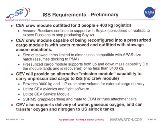 Editor’s note: These charts were part of a series of internal presentations made at NASA during June 2005 on the progress of the Exploration Systems Architecture Study.