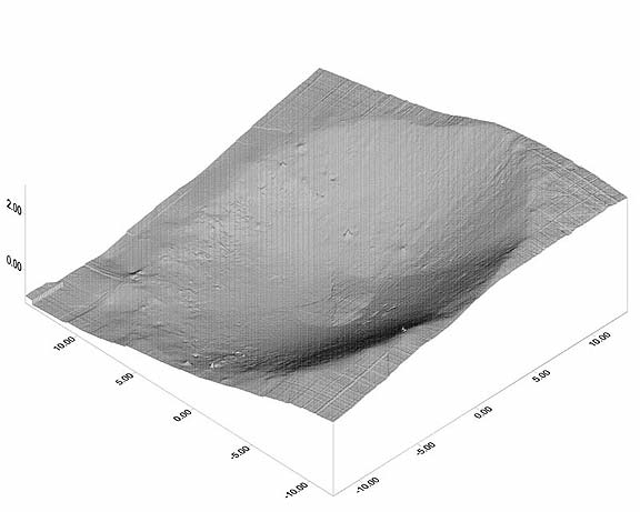This 3-D topographic map shows the martian crater currently cradling the Mars Exploration Rover Opportunity. It is the first look at the shape of a crater on another planet from the unique vantage point of inside the crater itself. Engineers and scientists will use this data to plot an exit route for Opportunity once it is ready to roll out of the crater; to characterize geological features of the crater; and to help pinpoint the rover’s location on the surface of Mars. The crater is estimated to be 3 meters (9.8 feet) deep and 22 (72.2) meters across. The map consists of data from the rover’s panoramic camera.
