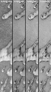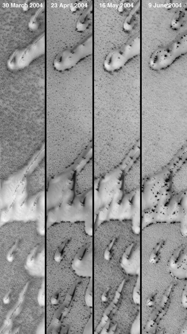 images show north polar sand dunes as they appeared on four