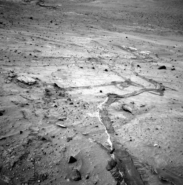 Plans called for Spirit to complete a winter check-up of all the rover’s cameras by calibrating the microscopic imager. To accomplish this procedure, known as a photon transfer observation, Spirit acquired 20 pairs of images, each pair taken during a different exposure time. Engineers used these images to form a baseline for estimating unwanted electronic signals using a Poisson distribution.
