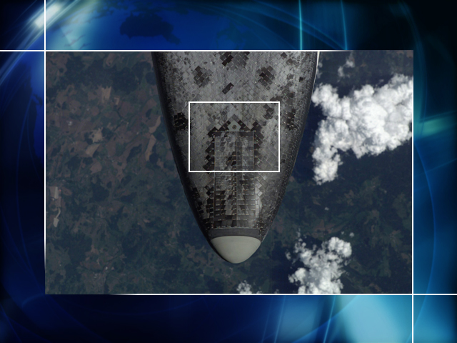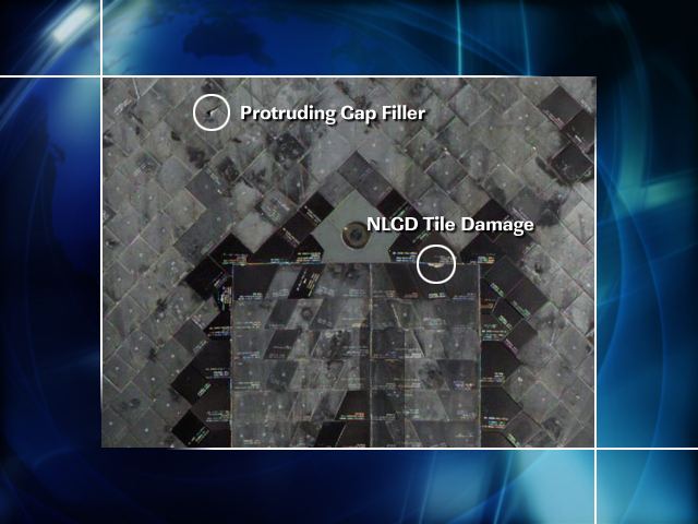 ISS011-E-11084 (closeup) – Protruding Gap Filler; NLGD Tile Damage