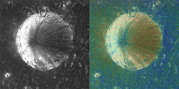 The crater was first identified as a region of interest during the Indian Chandrayaan-1 mission last year, when it was seen to exhibit unusual radar properties consistent with the presence of ice. But with a resolution 10 times better than the radar aboard the Chandrayaan-1 spacecraft, Mini-RF allows us to see details of the crater’s interior. In particular, the circular polarization ratio (CPR) measures the polarization characteristics of the radar echoes, which give clues to the nature of the surface materials.