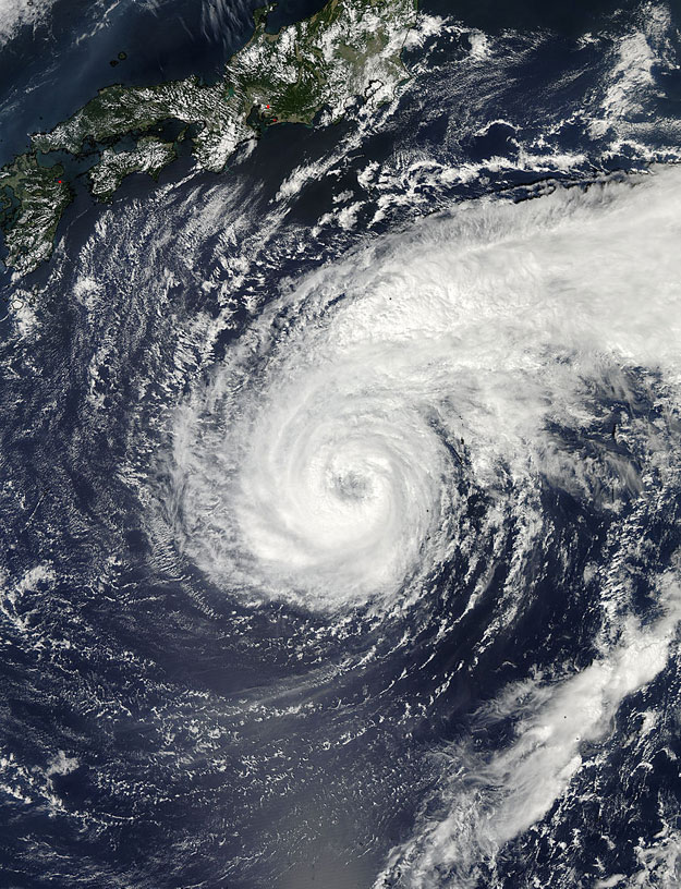 The MODIS instrument aboard NASA’s Aqua satellite captured this image of Typhoon Pabuk on Sept. 24 at 04:05 UTC as it was nearing Japan. High clouds drape over Pabuk’s eye. Image Credit: NASA Goddard MODIS Rapid Response Team.