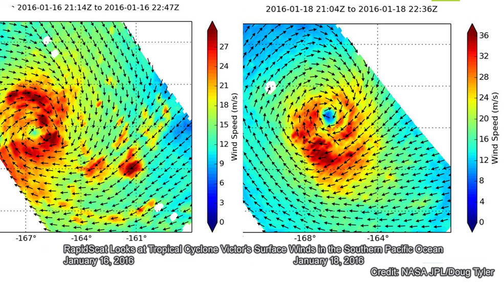 NASA satellites and instruments have been monitoring Tropical Cyclone Victor, a hurricane in the South Pacific Ocean with a large eye. NASA’s Aqua satellite, NASA-NOAA’s Suomi NPP satellite and the RapidScat instrument aboard the International Space Station have all gathered data on the storm.