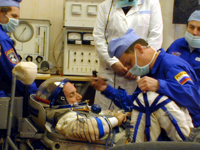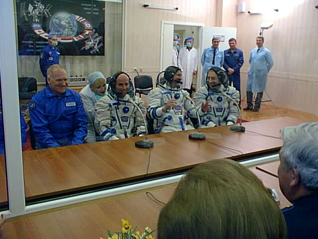 Status Report Photo Report: Final space suit check-out and pre-launch news conference with the Soyuz TM-32 crew By SpaceRef Editor April 28, 2001 Filed under International Space Station, RSC Energia, Russia 04/28/2001. Baikonur cosmodrome: Final space suit check-out and pre-launch news conference with the Soyuz TM-32 crew. Click on image to enlarge SpaceRef Editor SpaceRef staff editor. Follow on Twitter