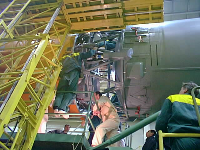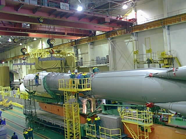 Status Report Photo Report: Integration of Soyuz TM-33 spacecraft with the Soyuz-U launch vehicle By SpaceRef Editor October 18, 2001 Filed under International Space Station, RSC Energia, Russia Integration of the encapsulated Soyuz TM-33 spacecraft with the Soyuz-U launch vehicle in Launch Vehicle Assembly and Testing Facility. Click on image to enlarge SpaceRef Editor SpaceRef staff editor. Follow on Twitter