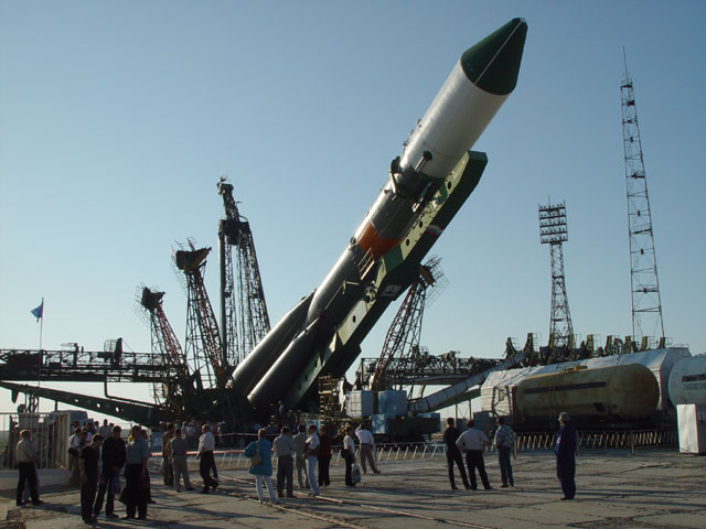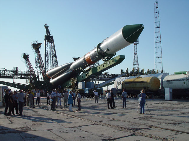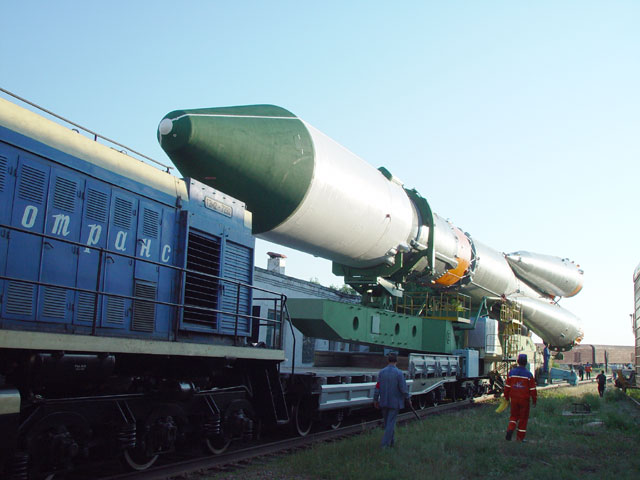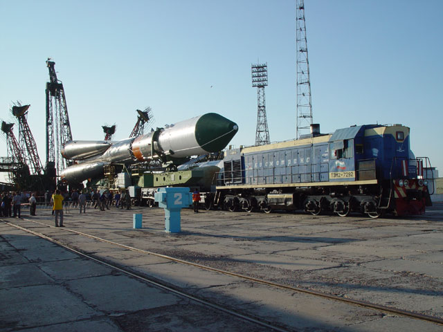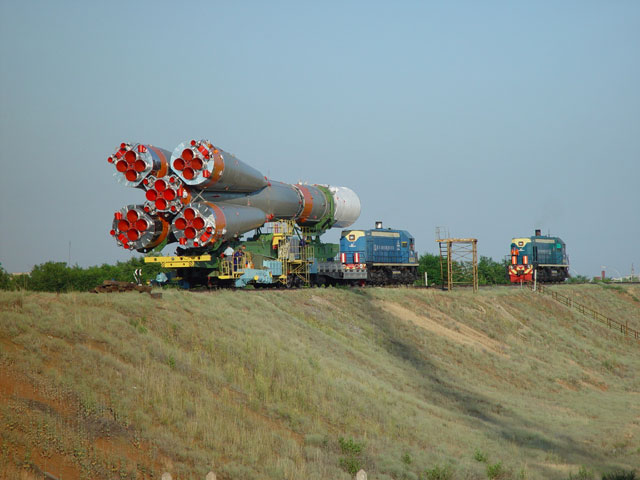 The launcher with the Progress M-46 cargo vehicle was rolled