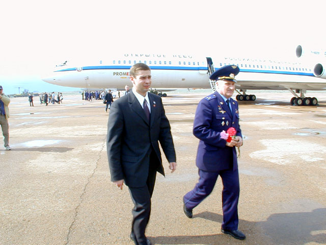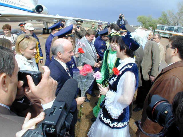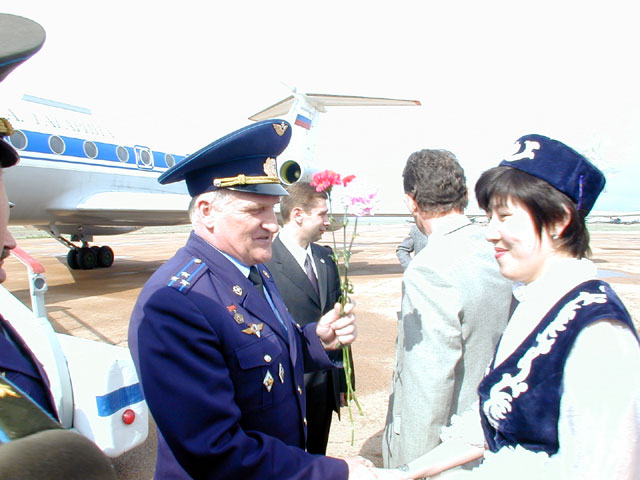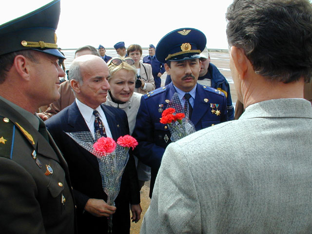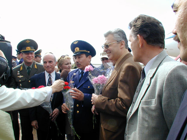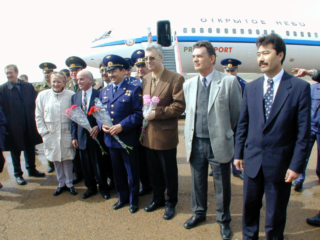 23 April 2001: The first Russian visiting crews to the ISS consisting of T.Musabaev, Yu.Baturin and D.Tito (prime crew) and V.Afanasiev, K.Kozeev (backup crew) arrived to the launch site to immediate training for the flight to the Inernational Space Station scheduled on April 28.