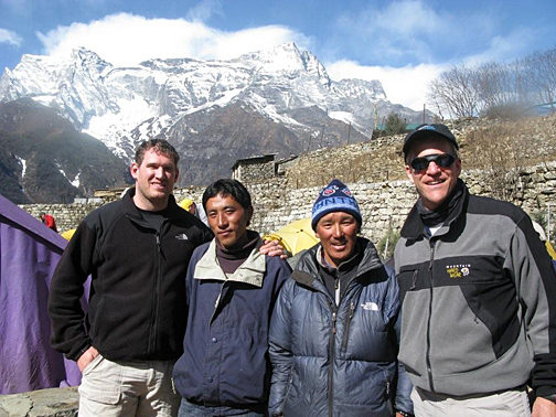 (L to R) Adam Janikowski, Ang Namgya Sherpa, Kami Sherpa, Scott Parazynski at Namche Bazar