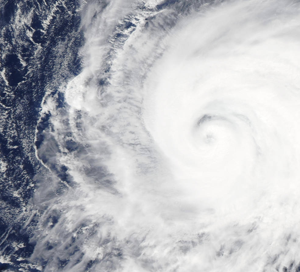 The MODIS or Moderate Resolution Imaging Spectroradiometer instrument aboard NASA’s Aqua satellite zoomed into Typhoon Kilo’s eye on September 3. MODIS looked at the eye with a 250 meter (0.15 mile/273 yard) resolution close-up. The image showed an eye mostly covered by high clouds, however, the northern eyewall was visible.