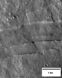 Is Mars volcanically dead – or could one of the Tharsis or Elysium volcanoes surprise us yet? Recent evidence from Mars Global Surveyor (MGS) data suggests that perhaps they could. William Hartmann from the Planetary Science Institute in Tucson, Arizona, Alfred McEwen from the University of Arizona and their team of US collaborators have used images from the MGS camera to estimate that lava flows south of Elysium Mons are a mere 20 million years old. “Some individual flow units could be as young as 10 million years or less”, says Hartmann. “In geological terms, that’s so recent that volcanic activity might start up again at any time somewhere on the red planet.” The clue lies with crater counts They came to this conclusion after counting the number of impact craters of various sizes on the lava flows. The older a surface, the more impact craters it will have because it has been around longer to accumulate them (see The ages of Mars). This dating method, however, is uncertain by a factor of up to four and the team’s results have yet to gain universal acceptance. “If I tell you I have an area with an age of 20 million years and I’m out by a factor of four, then the true age could be as much as 80 million years. But that’s still within the last few per cent of Martian history,” points out Hartmann. “This means volcanism did not shut off in the first 2.5 billion years, as some early scientific papers proposed. Rather, the planet apparently continues to have at least some localised, sporadic activity.” The team have also found evidence for flows less than 100 million years old on the slopes of Olympus Mons and Arsia Mons, one of the Tharsis volcanoes. But the accuracy of these dates will probably not be known for sure until a lander capable of providing absolute ages of rocks in situ, like Mars Express’s Beagle 2, or a sample return mission, heads for one of the areas in question. |
